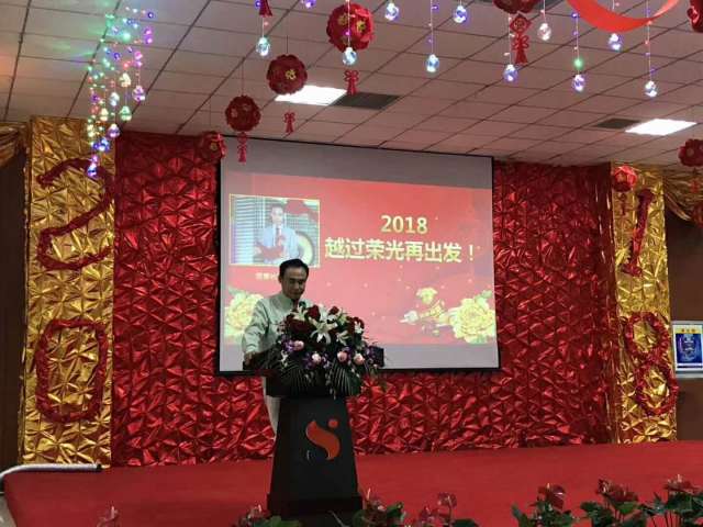 此次年會主題為“2018,越過榮光再出發”,公司董事長孫總首先致新年致辭,孫總總結了2017年 公司取得的主要成績,再次對公司上市成功付出辛苦工作的員工和同仁表示感謝!在肯定工作成績的同時,孫總分析了公司產業發展形勢,并詳細闡述了公司戰略發 展方向和項目規劃。面對公司產業轉型升級的要求,孫總要求大家必須要有危機意識,不能盲目樂觀。要加強自身學習,提高個人素質,廣納群賢,要立足崗位,敢 于擔當,勇于創新。孫總的講話語重心長,內容豐富,意義深刻,為公司接下來的工作指明了方向,增強了動力。