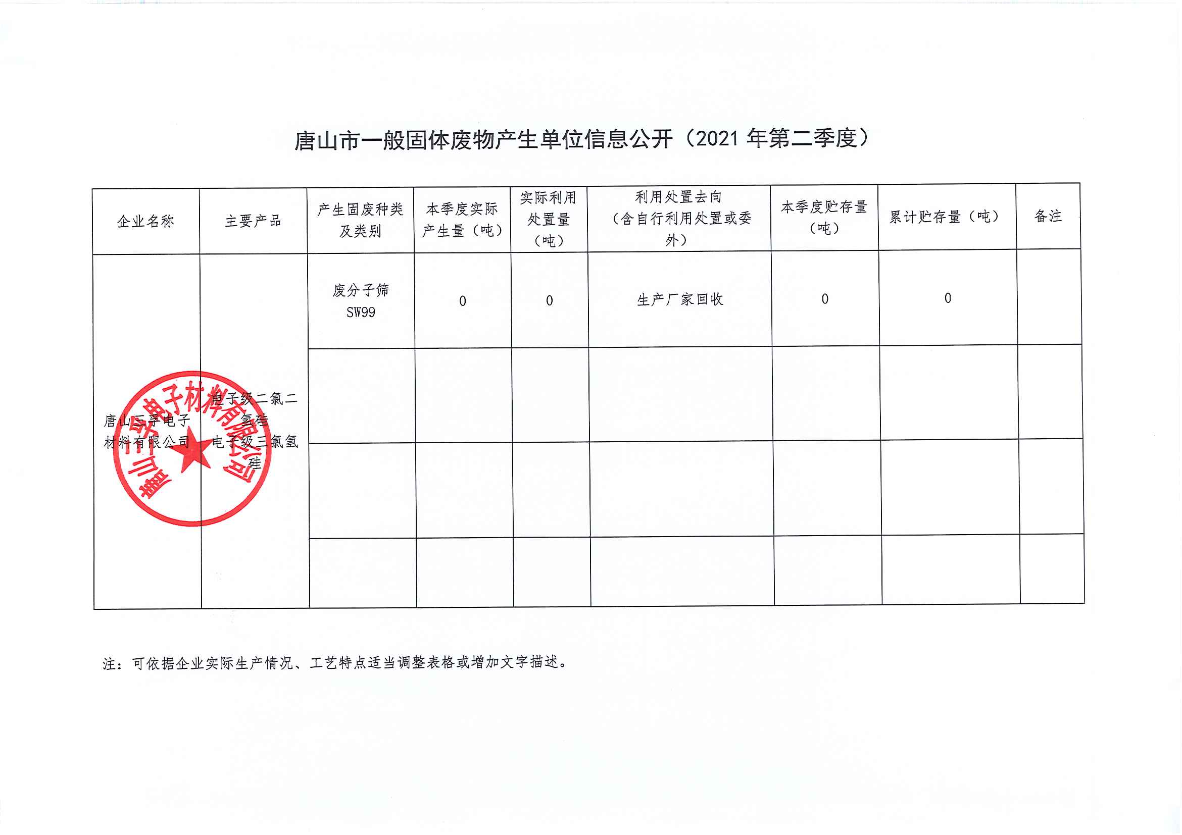 唐山三孚電子材料有限公司 一般固廢 二季度信息公開